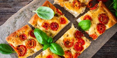 Freshly baked Ligurian-style focaccia, warm from the oven and full of flavor